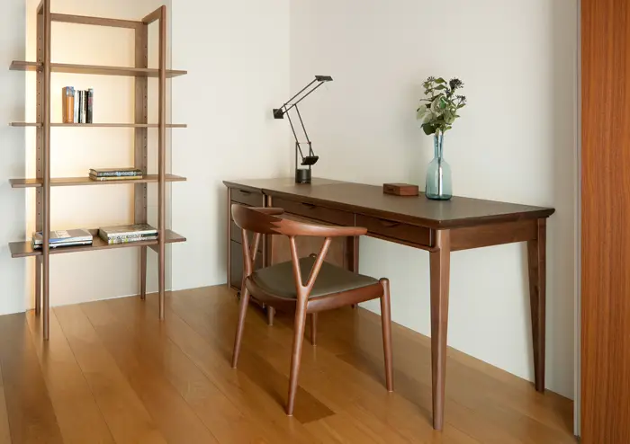 寝室や書斎など落ち着いた空間に合わせるのであれば深い色合いのウォールナット材がおすすめです。