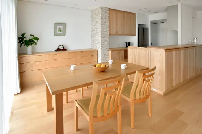 家具材とするうえでもそのすべすべな木肌と透明感すら感じる色合いは空間に爽やかさや清潔感を与えてくれます。