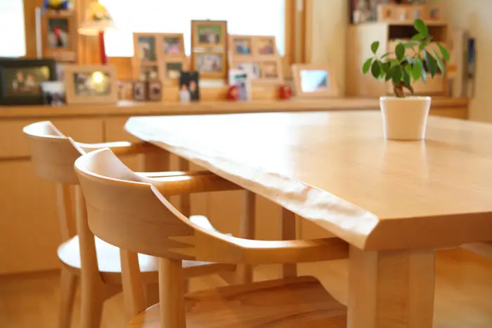 「木の真珠」と称えられるほどの光沢を持った木肌と特徴的な杢目を活かしたテーブルや収納は上品でシンプルなインテリアに最適だと言えます。