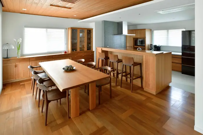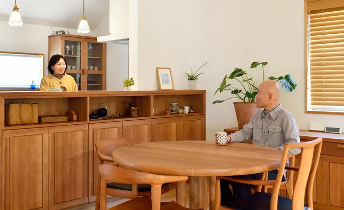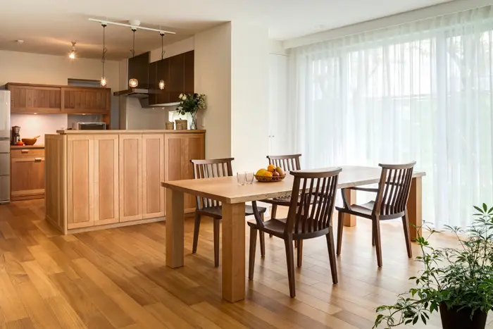 チェリーの家具を主役に持ってきた空間は温かみやぬくもりを視覚でもはっきり感じることのできる空間となります。