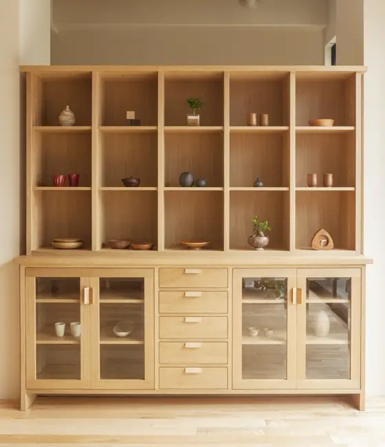 例えば、背面の背板をなくし壁を見えるようにすれば圧迫感も軽減されます。