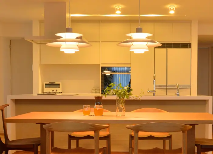 特にダイニングテーブルの上の丁度良い位置に照明が来ない、という悩みはよく伺います。
