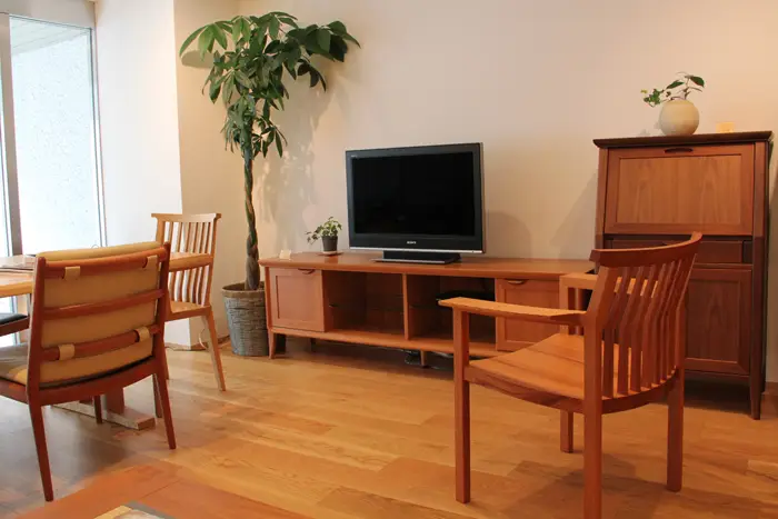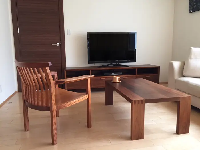 周囲の家具や建具がウォールナット材ですが、今では同じ空間でとても馴染んでくれています。