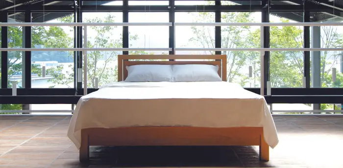 家具蔵のベッドフレームは無垢材を理にかなった方法で組み上げ、自然の癒しを生かしながら日本の風土に配慮した、巧みな技が息づいています。