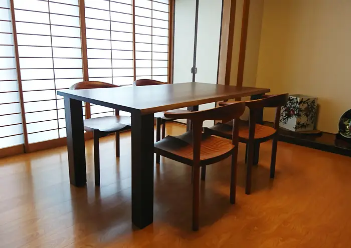 アメリカンブラックウォールナットの持つ精悍で落ち着きのある表情、水墨画を思わせる木目はアメリカ生まれの材でありながら和のテイストにたいへん良く合います。
