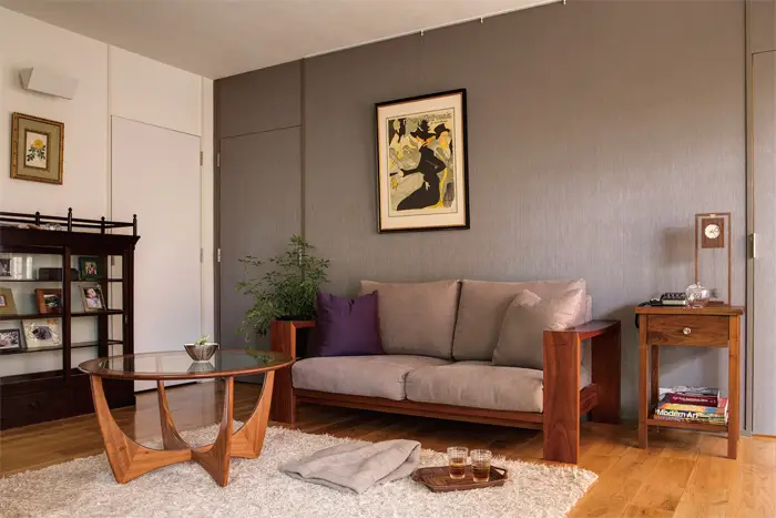 家具による圧迫感を抑えるだけでなく、視線を誘導し、空間を広く見せるのもインテリアテクニックのひとつ。