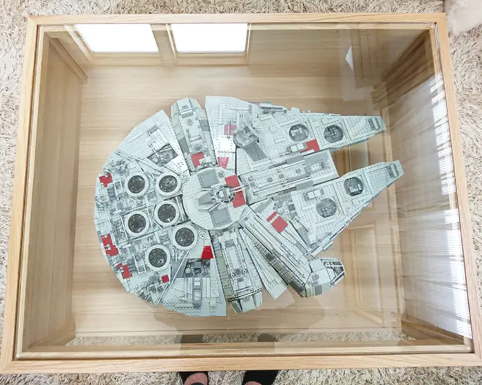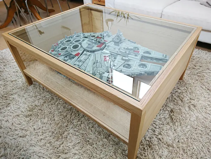 このコレクションテーブルをご希望いただいた方がそこに収めたいものは、レゴブロックでできた映画「スターウォーズ」に登場する宇宙船「ミレニアム・ファルコン号」。