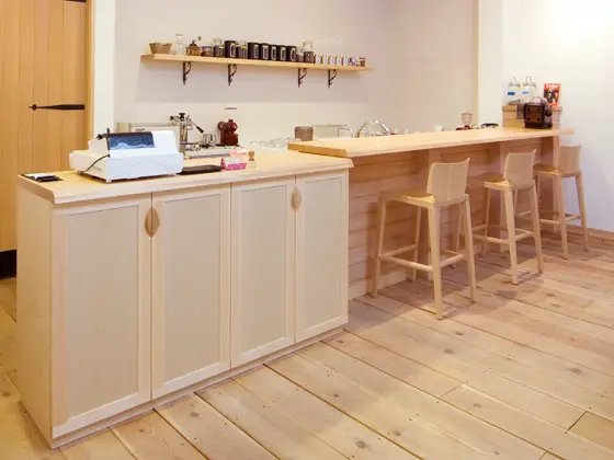 「木の真珠」とも称される上品な質感を持つ素材であるシュガーメープル材をはじめとしたハードメープル材は、どのような空間にも溶け込む万能な素材です。