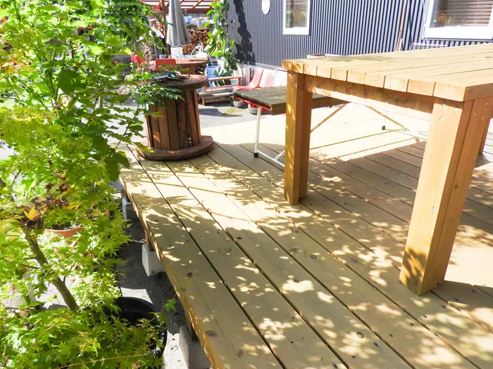 ソフトウッドの中では耐久性が高いヒノキや杉でデッキを作っても、 メンテナンスをしなければ2~5年で腐っていきます。