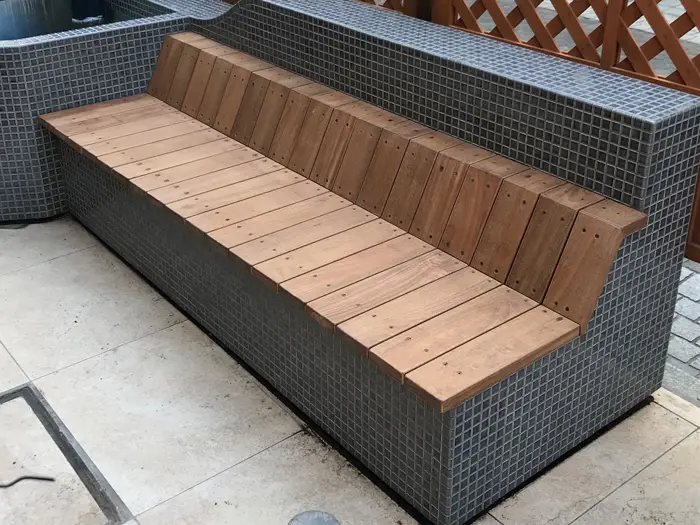 家具蔵・横浜元町店の目の前も、ガーデニングフェンスに囲まれたゾーンができ、路面のタイルが張り替えから植栽の植え替え、内照式のサインも新しくなり、いよいよ少し前にプランターと一体になったベンチが設置されました。