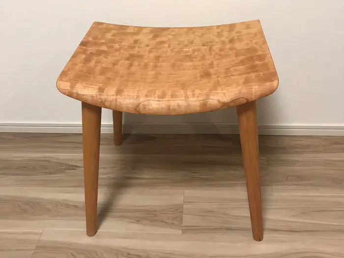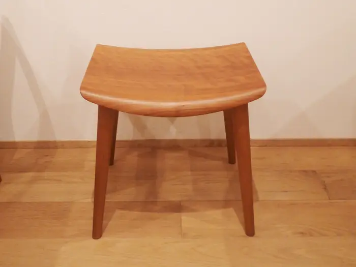 こちらが作られて間もないチェリー材の無垢材スツール「セレ」。