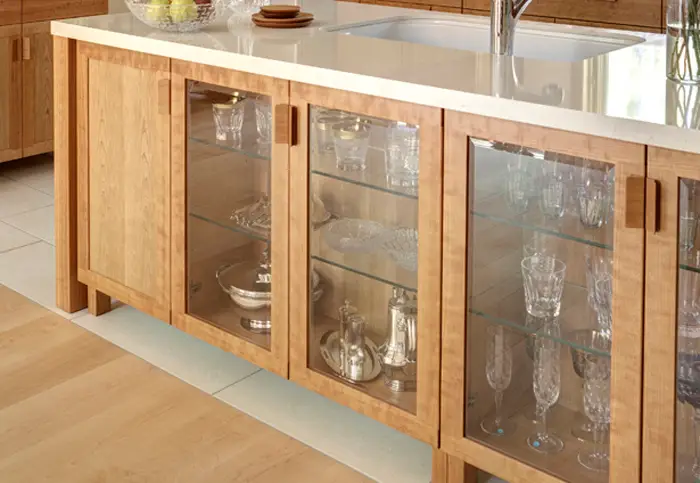 ガラス扉にカットガラスやアンティークガラスを使用したり、エッチング加工が施してあるととても素敵です。