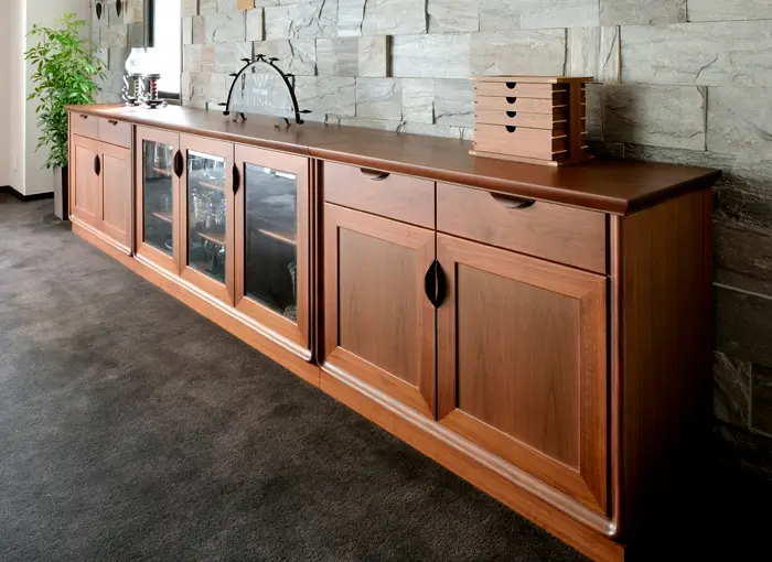 内部に照明が内蔵されている家具も多く、最も高級感がある飾り棚です。