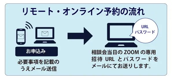 「Zoom」を使用してのリモート・オンライン相談には事前のご予約が必要となります。