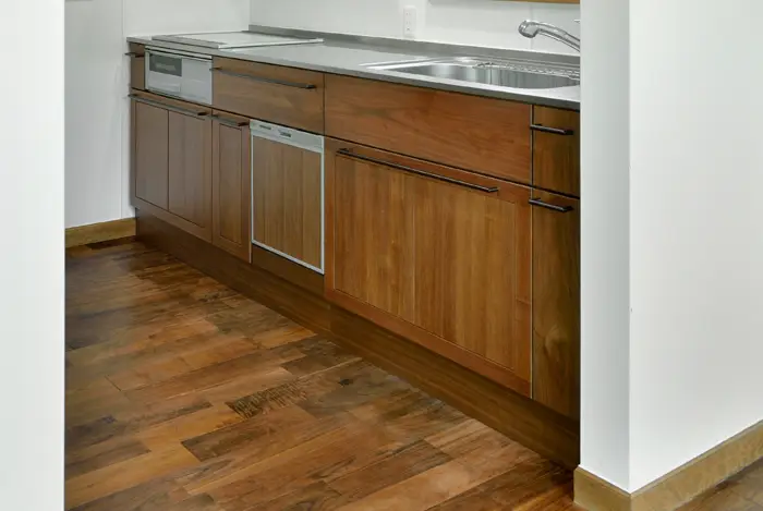 LDKが無垢材でコーディネートされ、さらにキッチンも、という可能性も叶えることができるのが「木のキッチン」です。