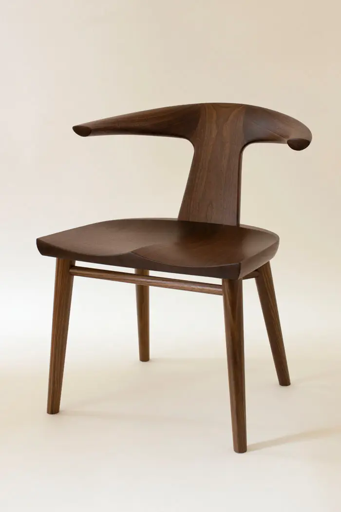 木目の流れを活かしながら各パーツを木取りし、それぞれのパーツを絶妙で滑らかなラインへと削り込んでいく手仕事は曲木では実現できない個性豊か年輪の表情が美しく現れ、彫刻のような複雑な造形を可能にしています。