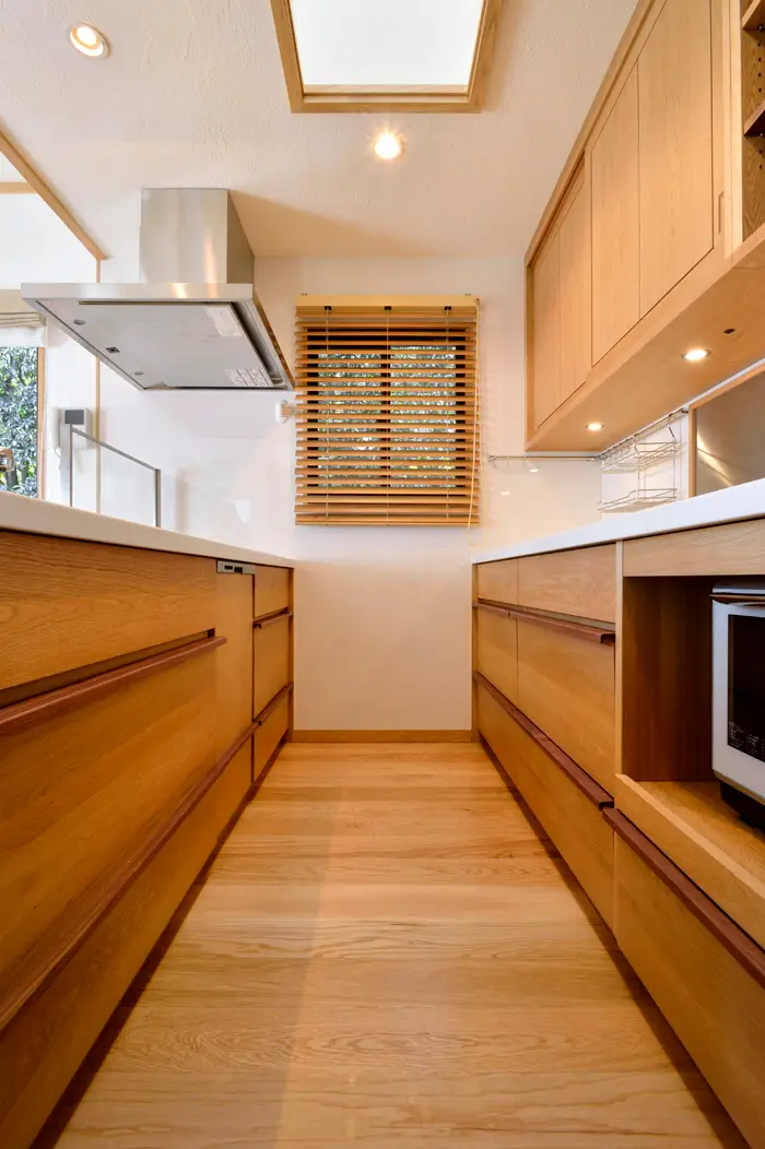 有機的な無垢材と無機質なコンクリートを組み合わせたデザインはインテリア雑誌でもよく見かけますが、キッチンの床をモルタルで仕上げるには表面のコーティングを工夫する必要があったり、割れないように厚塗りにしたりとモルタル手間がかかる割に意匠性が持続しないと考えられてきました。