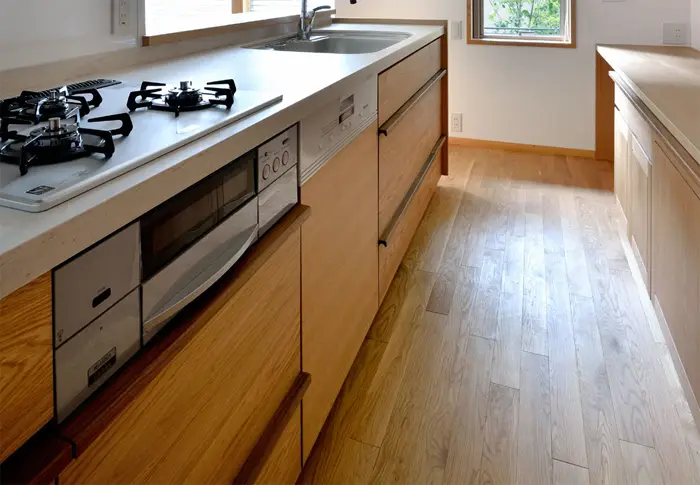 長さ2.5mの無垢材キッチン。