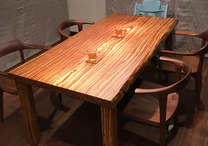 また、ゼブラウッドの一枚板天板自体が市場に出回っている数自体が少なく、希少性の面でも非常に価値が高いといえるでしょう。