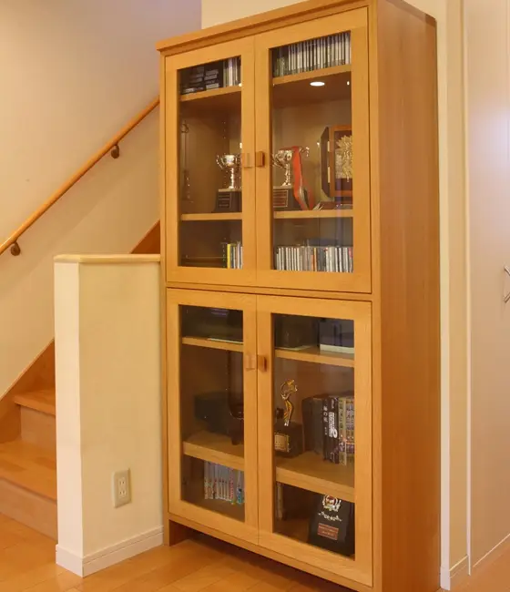 扉が付いているブックボードは、収納物のホコリや日焼けを避ける事ができ、それらを隠しておくこともできるため、雑多な状態になることを避ける事が可能です。
