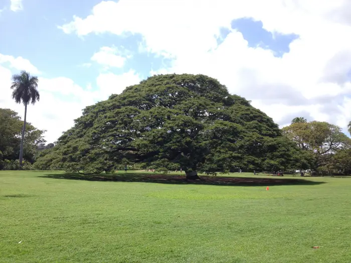 強い日差しを避けてその木陰で人が休むことから、ハワイでは「人の集まる木」としても親しまれています。