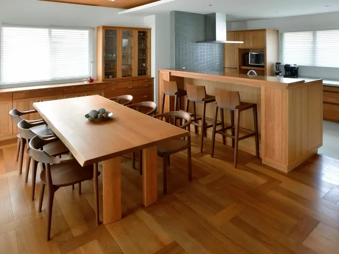 キッチンについてお話を伺うと、キッチン本体を無垢材でというご希望の方と、リビングダイニングから見える部分を無垢材にしたいというお客様、大きく分けてどちらかのご希望に分かれます。