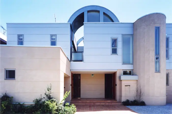 三宮さんが独立後に初めて手掛けたのは、曲線を描く天井や、ビビッドなブルーの壁などを配したモダンなデザインのお宅。ポストモダン建築のテイストがあり、今の時代でも新鮮な発見がある造形です。