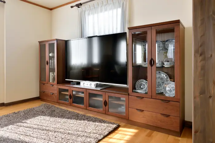 テレビを壁掛けにする人はその点を考慮しなくても良いのですが、もしAV機器を収納する際にはそのサイズを把握したうえでのテレビボードのサイズ設定が必要です。