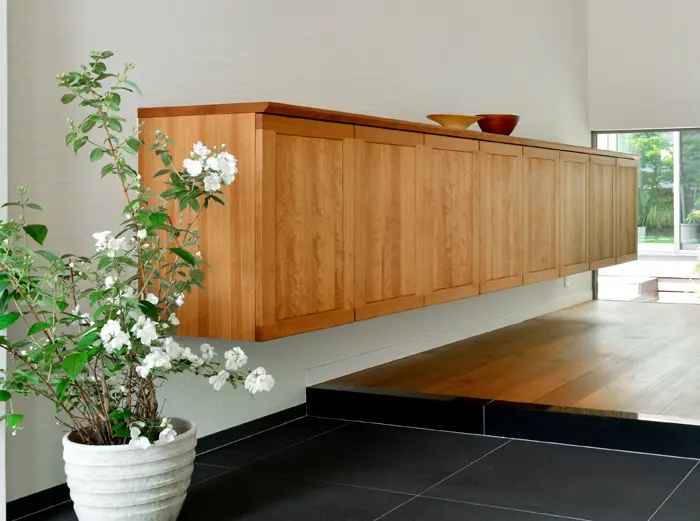 無着色仕上げの無垢材で製作する収納家具は使い込むほどに味わいや風合いを増していきます。