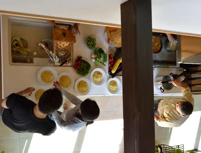 お子さんと一緒に料理を行う、それまでキッチンに立っていなかった人も使用するとなると必要なスペースの取り方も変わってきます。