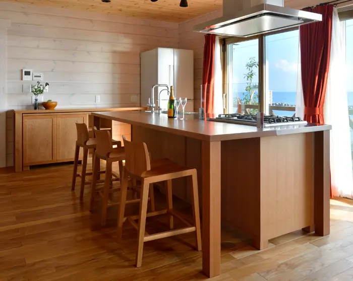 心地良く、温もりを感じられる素材を取り入れ木のキッチンでリビングやダイニングの無垢材家具とも調和させることで見た目だけでなく心も豊かな空間となるはずです。
