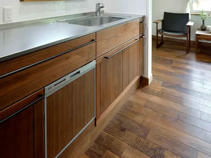 容量が大きいのが最大の魅力であり食器のセットもしやすいですが、屈まないと操作できない、水滴が床に落ちやすいといった課題もあり、さらには国内システムキッチンメーカーでは装備が難しい場合もあります。