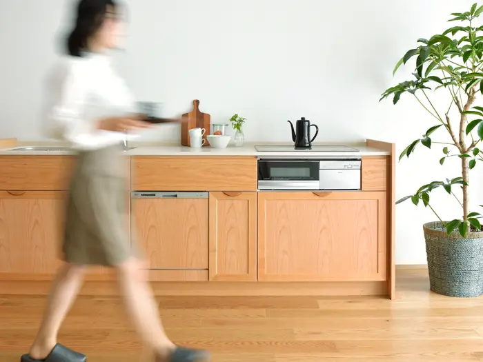 一方で、電子レンジやトースター、炊飯器などのキッチン家電を置くスペースについては、すっきりと見栄え良く配置するのに少し工夫が必要となります。
