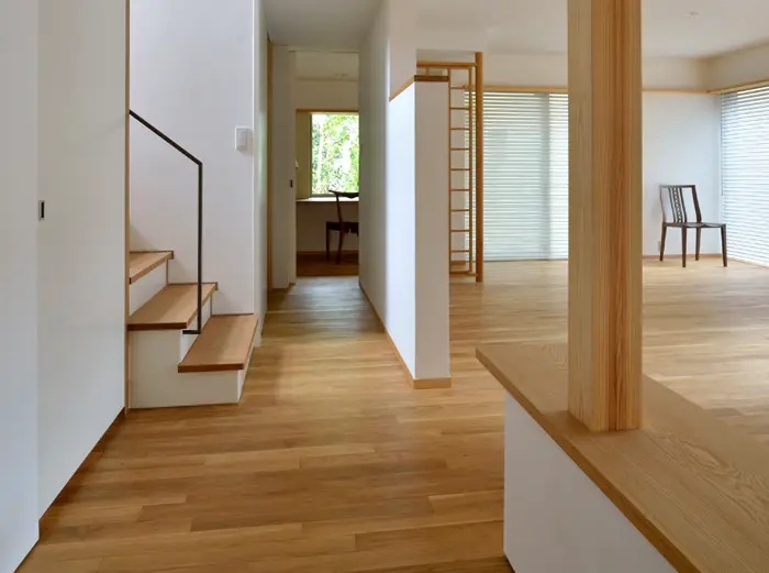 「天井も階段の手すりも窓の位置や形も、あくまでもベーシックなものなのですが、そのサイズや位置など、ディテールに一工夫すると、目に見えない空気感・・・佇まいのようなものが生まれてきます。 生活動線を役割だけで区分けするのではなく、身体の所作や視線の動きが自然に流れて、とくに考えなくても気持ち良く空間を使える、そんな家を目指して設計しています」