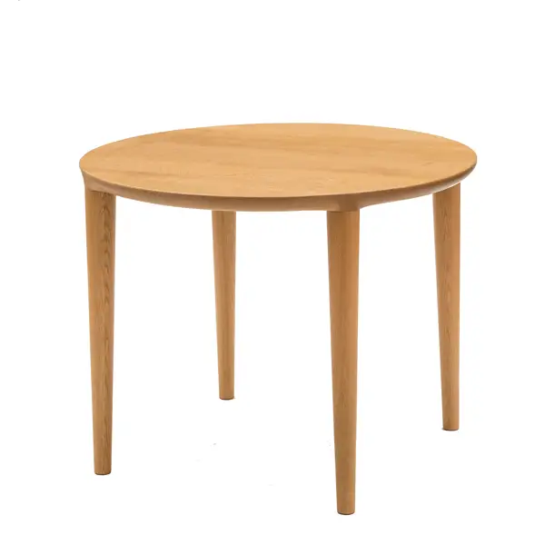 その丸い形状が優しく柔らかい雰囲気を演出し、空間を広く見せる効果もあるラウンドテーブル。