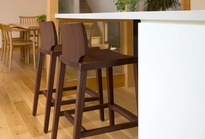ここで使用されるのは座面が高く、脚も長いカウンターチェア、またはカウンタースツールです。