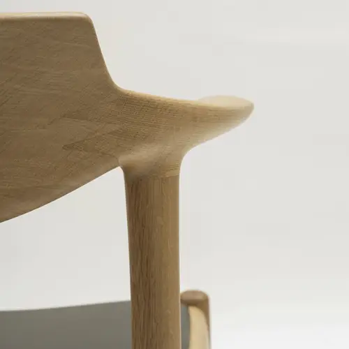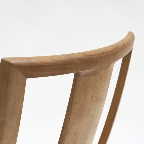 そして、貫きを使わないことで貴重な材を無駄にする事なく、強度を保つことができ、軽く仕上げることが出来ると共にスッキリとしたスタイルになる為、どのような空間にも合わせやすいチェアになります。