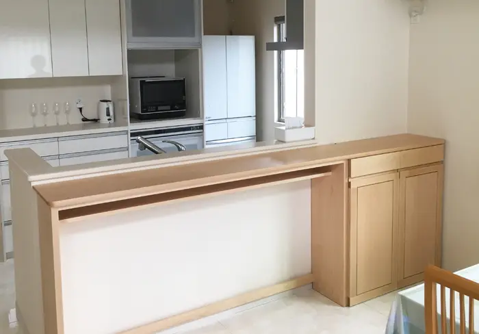 対面式のキッチンが増え、配膳や料理の準備などに使用するカウンターがダイニングに向けて常備されている住まいは非常に多くなっています。