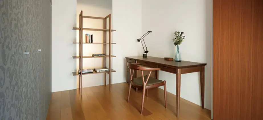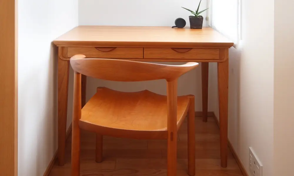 なかでも仕事や勉強を行う場となるデスクに木そのものともいえる無垢材を持ってくることで、手触りによる癒しや光の反射による目への刺激の緩和といった効果も期待できます。