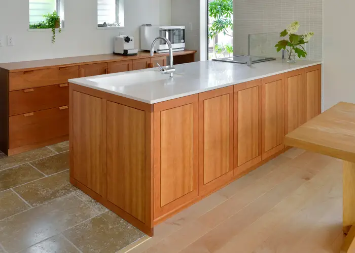 木そのものの美しい模様や質感をそのまま生かした仕上がりの厳選された無垢材はキッチンに自然な温かみや質感を与えることができます。