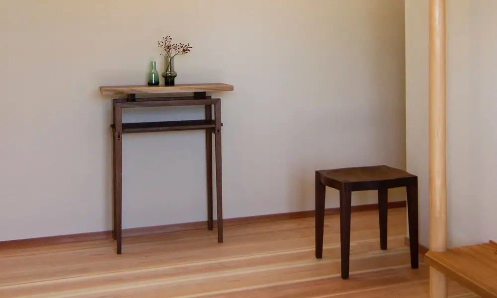 家具蔵でも無垢天板・ガラス天板・一枚板天板で数種のコンソールテーブルをオーダー製作しています。