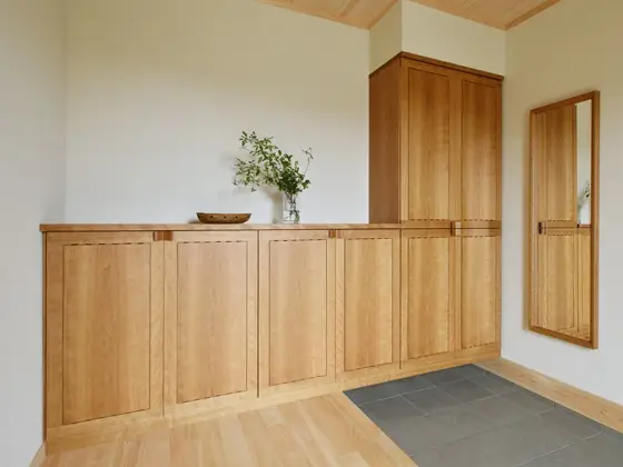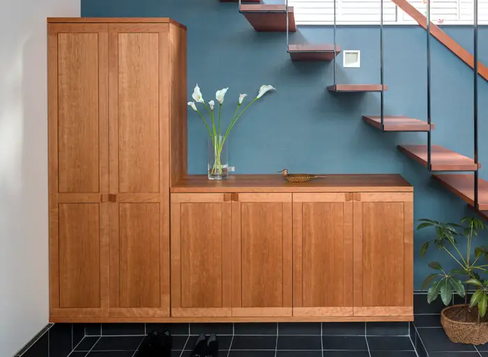 無着色仕上げの無垢材をふんだんに使用し、熟練の職人により製作された自分だけの理想の玄関収納は、いつまでも住まいの第一印象を決める顔として大活躍してくれるでしょう。