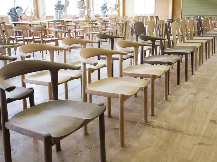 木目の美しさを活かし、傷も目立たなくすることでインテリアとしても道具としても長く愛してもらうことのできる無垢材チェアとなるのです。