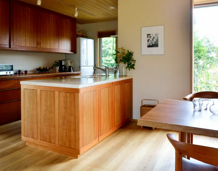 木のキッチン・無垢材のキッチンは、しっくりと手に馴染み、空間に美しく溶け込む「生活の道具」となります。
