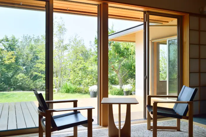 室内に落ち着きを与え、山方向への風景を切り取る効果もあります。