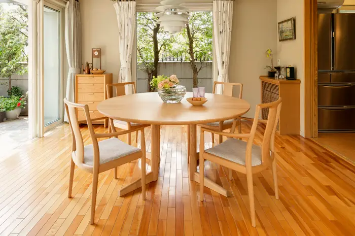 メープル材をインテリアに使用する場合、木目が穏やかで、淡くやさしい色味のため、シンプルかつ清潔感のある印象になります。