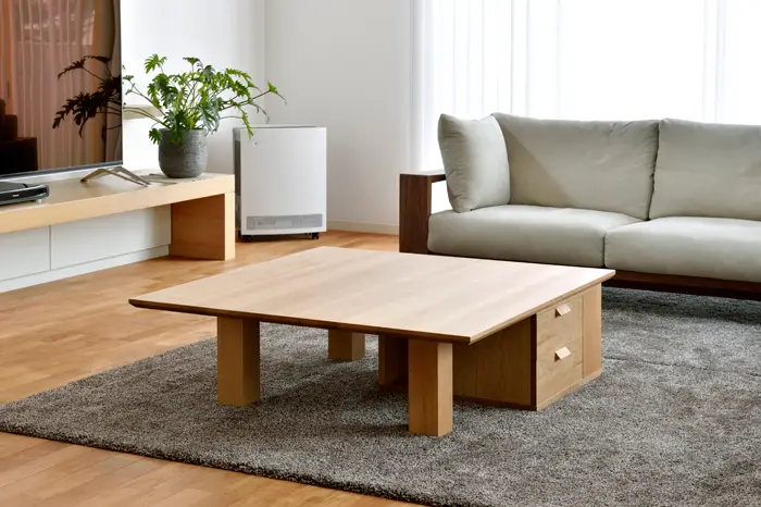 また、オーク材やブナ材などの同色系の明るい素材の家具を合わせたり、他の無垢材を合わせるとナチュラルモダンな落ち着いた雰囲気を演出できるでしょう。