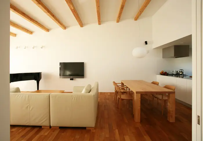 一方で、ダイニングテーブルが暮らしの主流の場になることも多くなってきたなかで、ダイニングテーブル近くにある腰高の収納家具の上にテレビを乗せている、あるいはダイニング側からソファ越しにテレビを見るといったこともあります。