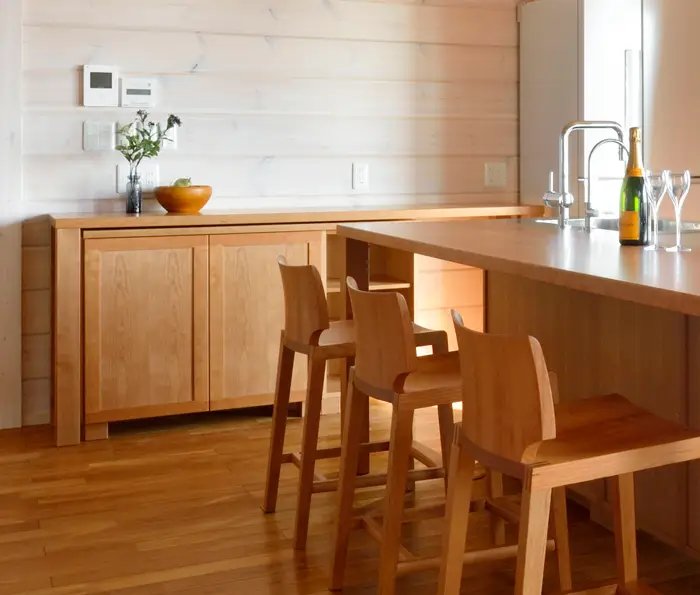木のキッチン・無垢材のキッチンはしっくりと手に馴染み、空間に美しく溶け込む「生活の道具」となります。