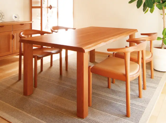 チェリーの無垢材テーブルにチェリーの無垢材チェアを合わせる